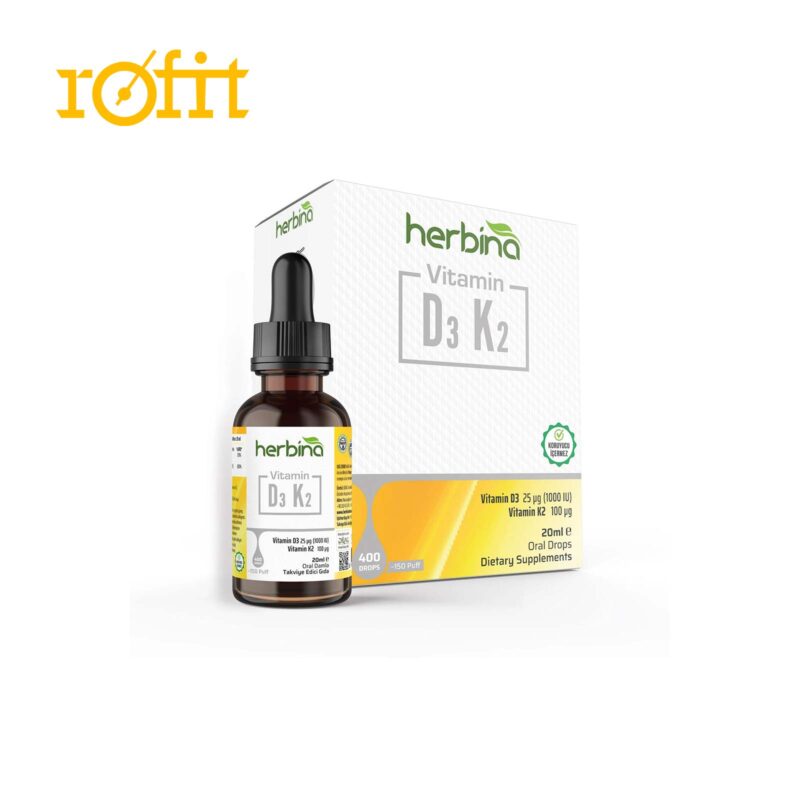 Herbina D3K2 Vitamin Drops با ترکیب بهینهی ویتامین D3 (کولهکلسیفرول) و ویتامین K2 (مناکوین-7)، به جذب مؤثرتر کلسیم، حفظ سلامت استخوانها و دندانها و پشتیبانی از عملکرد طبیعی سیستم ایمنی کمک میکند.